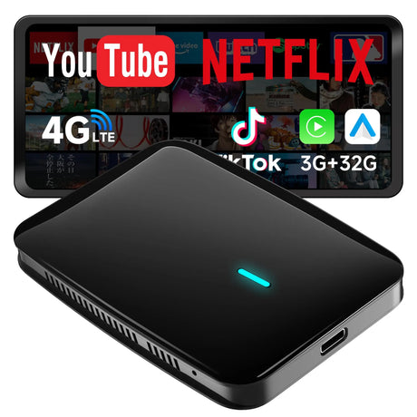CarPlay AIボックス、Netflix/YouTube/TFカード対応 ワイヤレスCarPlayアダプター、4G LTE内蔵 ワイヤレスAndroid Autoアダプター、3GB+32GB フルAndroid搭載 AIボックスCarPlay、AIスキル搭載DriveChat、デュアルWi-Fi/Bluetooth、プラグ&プレイ 純正有線CarPlay対応車に適合